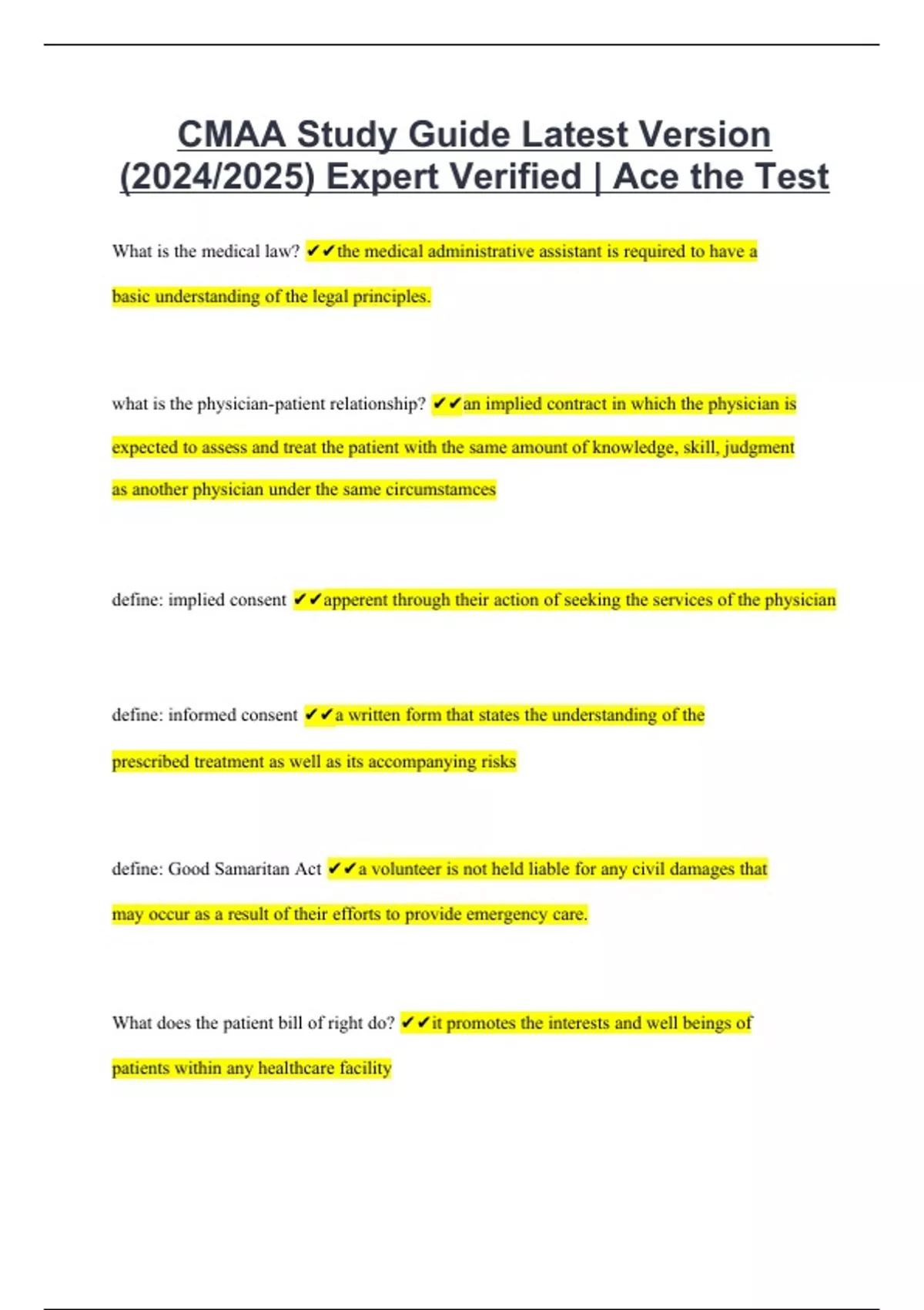 CMAA Study Guide Latest Version (2024/2025) Expert Verified | Ace the Test