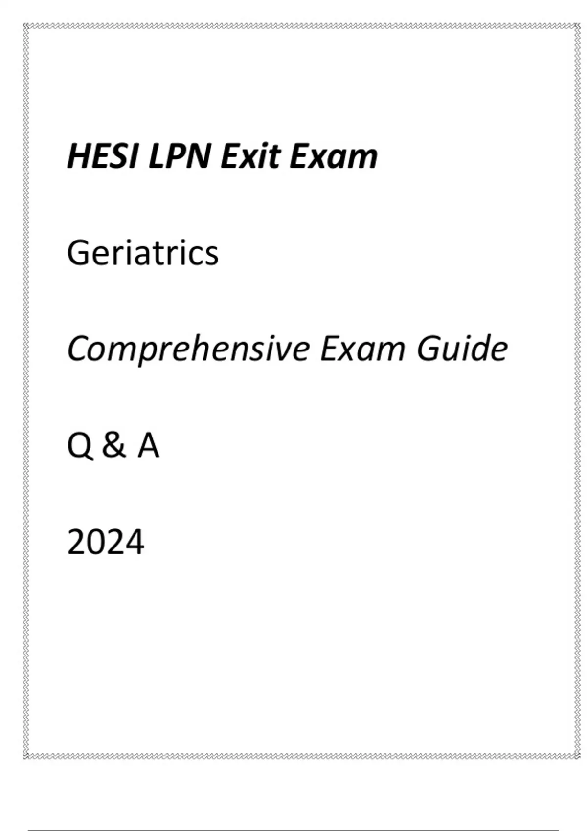HESI LPN Exit Exam (NCLEX Prep) Geriatrics Comprehensive Exam Guide 70+ Qns & Ans 2024HESI LPN Exit Exam (NCLEX Prep) Geriatrics Comprehensive Exam Guide 70+ Qns & Ans 2024