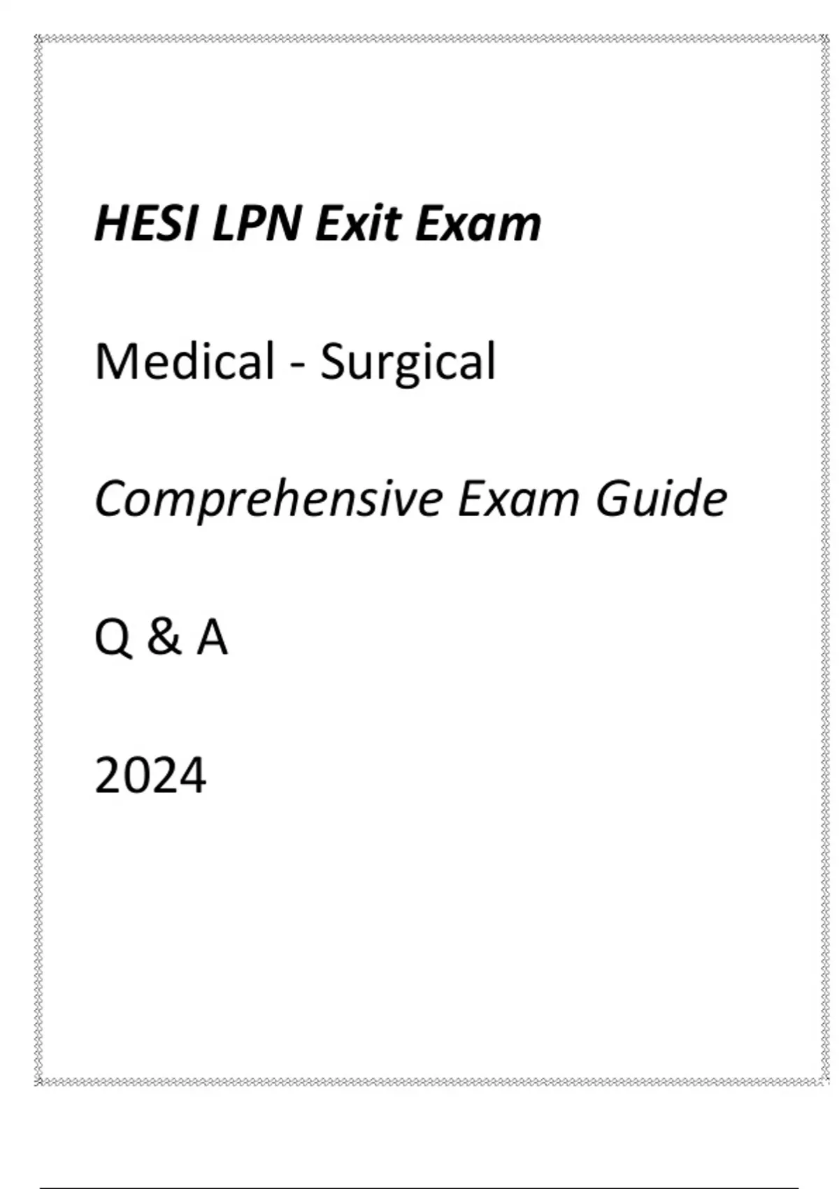 HESI LPN Exit Exam (NCLEX Prep) Medical-Surgical Comprehensive Exam Guide 70+ Qns & Ans 2024.HESI LPN Exit Exam (NCLEX Prep) Medical-Surgical Comprehensive Exam Guide 70+ Qns & Ans 2024.HESI LPN Exit Exam (NCLEX Prep) Medical-Surgical Comprehensive Exam Guide 70+ Qns & Ans 2024.