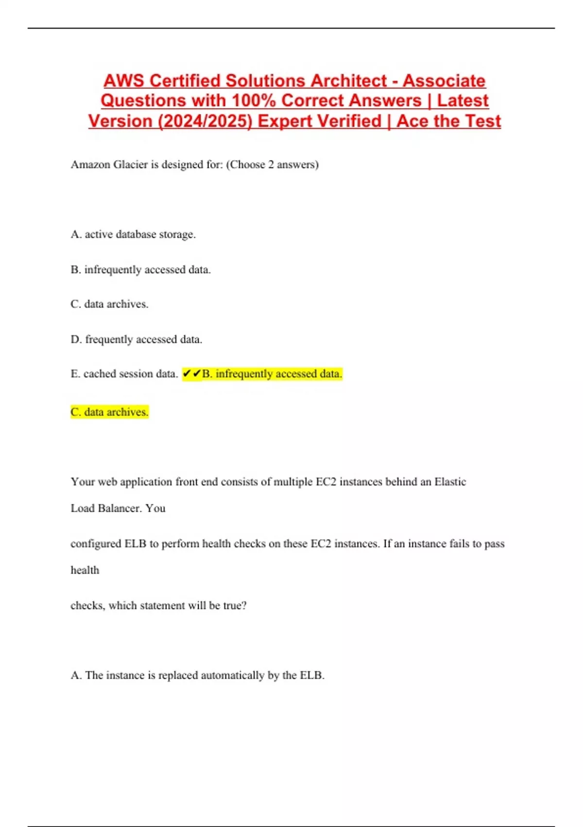 AWS Certified Solutions Architect - Associate Questions with 100% Correct Answers | Latest Version (2024/2025) Expert Verified | Ace the Test