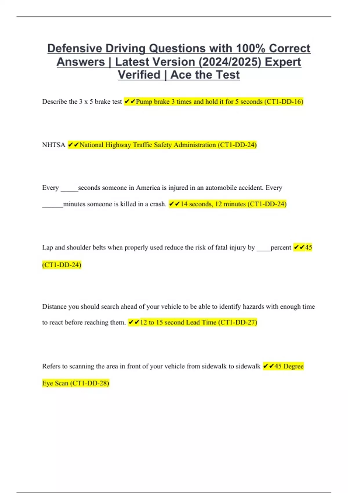 Defensive Driving Questions with 100% Correct Answers | Latest Version (2024/2025) Expert Verified | Ace the Test
