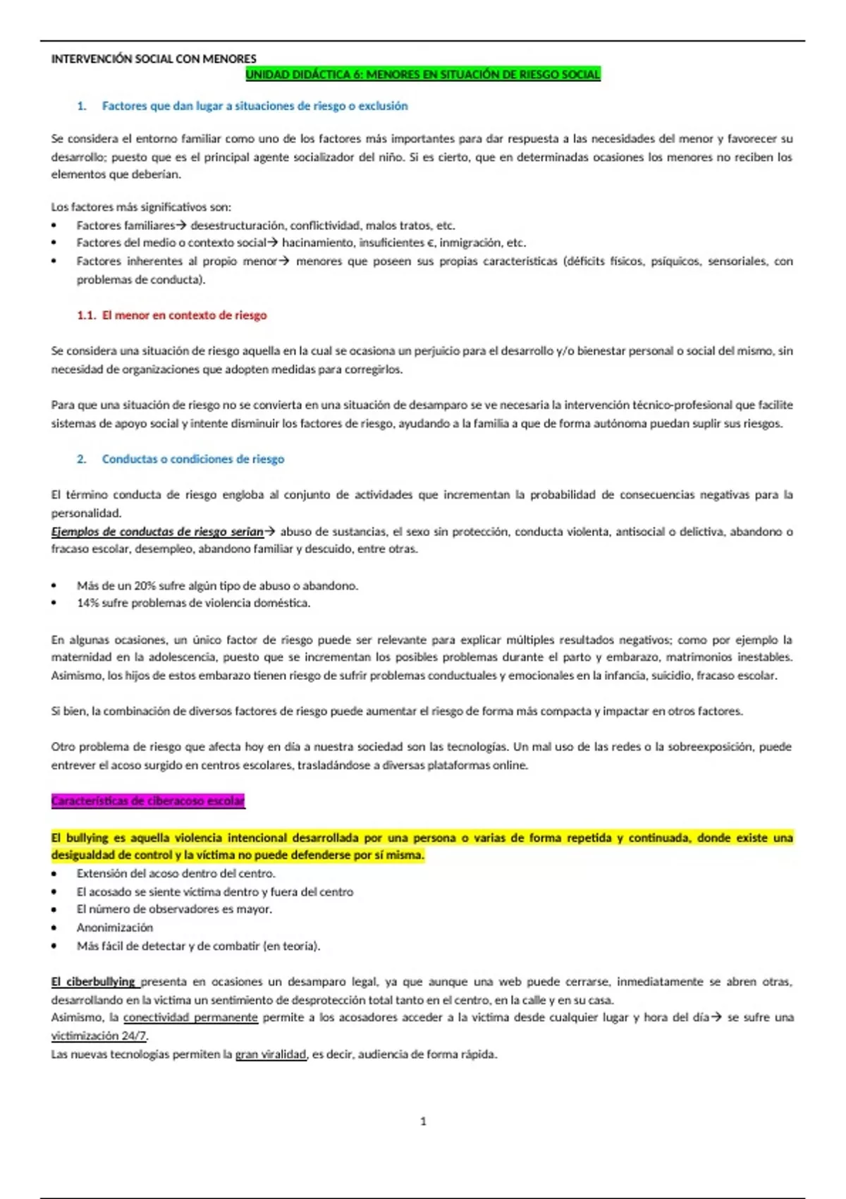 UNIDAD DIDÁCTICA 6: MENORES EN SITUACIÓN DE RIESGO SOCIAL
