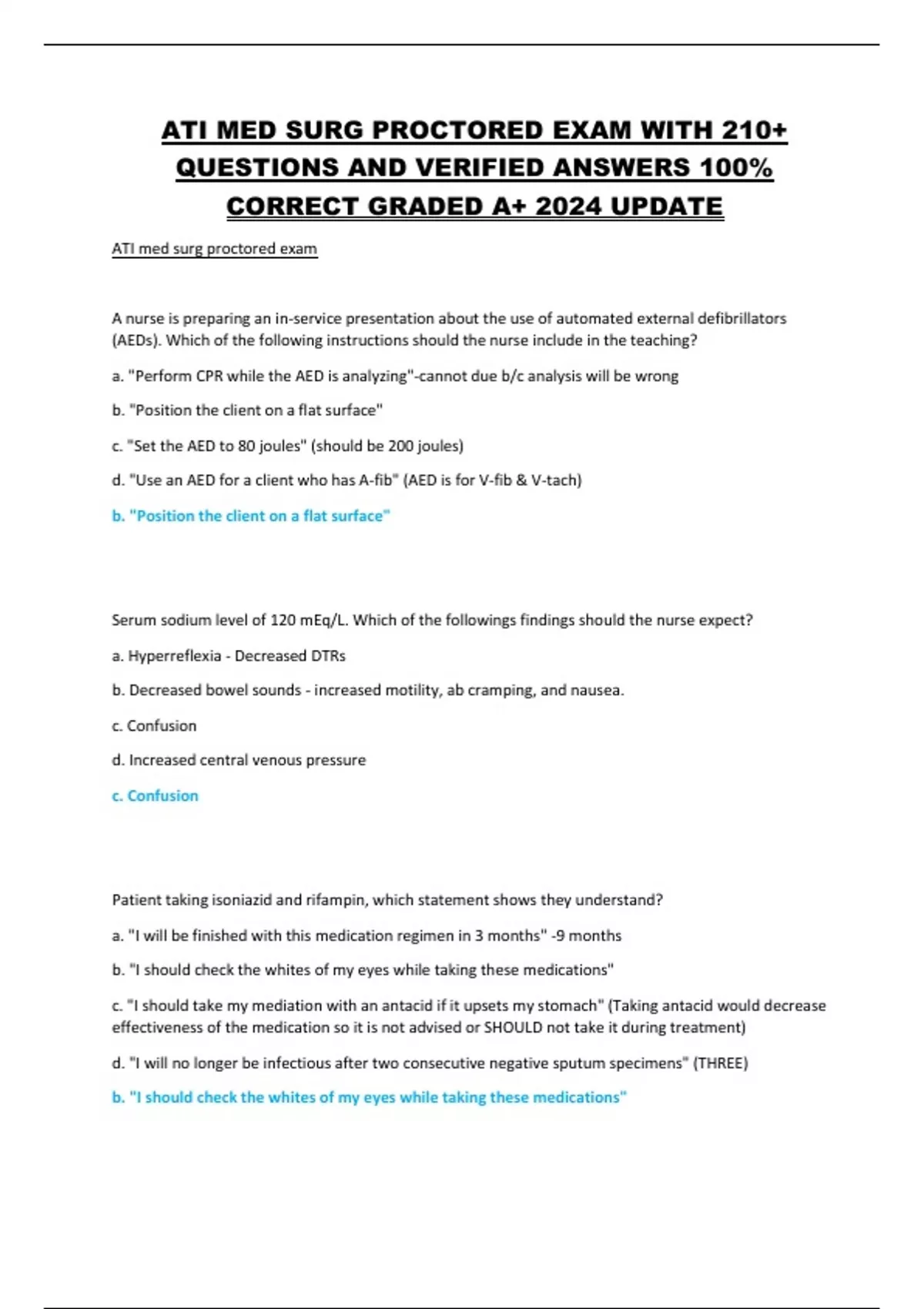 ATI MED SURG PROCTORED EXAM WITH 210+ QUESTIONS AND VERIFIED ANSWERS 100% CORRECT GRADED A+ 2024 UPDATE