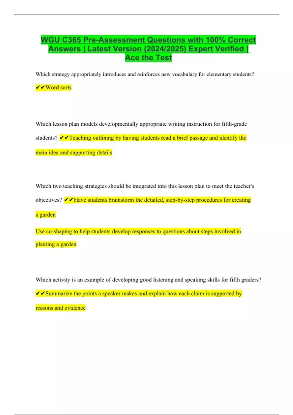 WGU C365 Pre-Assessment Questions with 100% Correct Answers | Latest Version (2024/2025) Expert Verified | Ace the Test