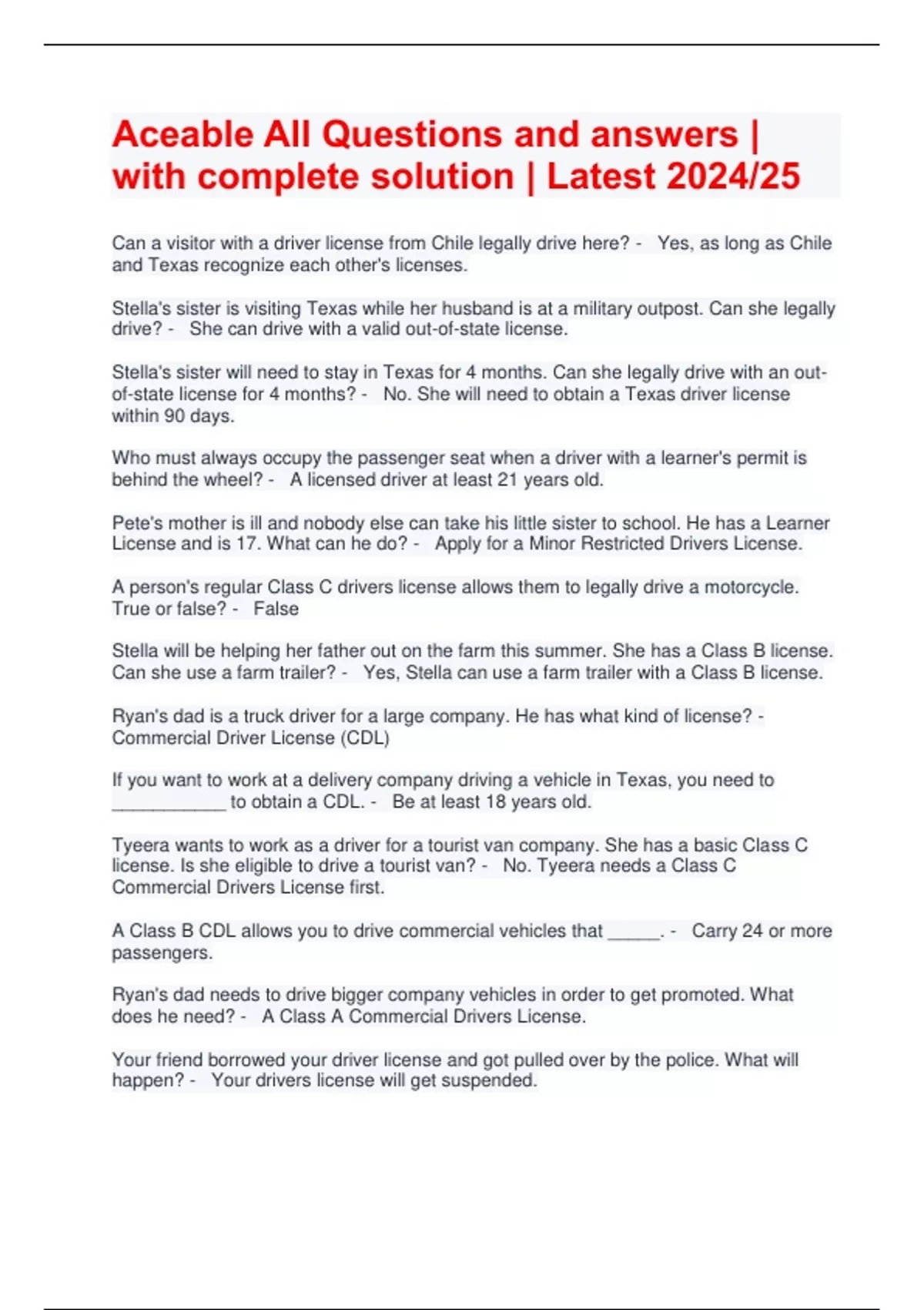Aceable All Questions and answers | with complete solution | Latest 2024/25