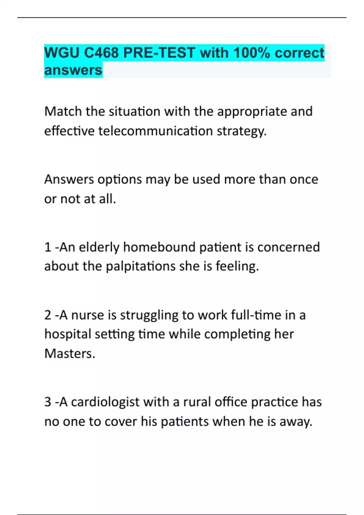 Match the situation with the appropriate and effective telecommunication strategy. Answers options may be used more than once or not at all. 1 -An elderly homebound patient is concerned about the palpitations she is feeling. 2 -A nurse is struggling to work full-time in a hospital setting time while completing her Masters. 3 -A cardiologist with a rural office practice has no one to cover his patients when he is away. 4 -A family member is unsure what to do for a home hospice patient who is restless and agitated during the night. 1=Real-time remote monitoring 2=Online classroom 3=Teleconsultants 4=Real-time remote monitoring Which example is a telehealth non-clinical application? -Distant patient education via computer What is a prominent socioeconomic factor driving telehealth medicine? -An increase in chronic disease conditions What is an important legal consideration in the use of telehealth nursing? -The nurse is licensed in each state in which the remote clients are located. What are two common characteristics of telehealth? Choose 2 answers -The use of video streaming technology -Transmission of biological data from a remote location Which of the following uses database applications to sift through large amounts of data and looks for previously hidden trends? -Data Mining A nurse is reviewing a patient's pneumonia vaccination status in the electronic medical record. The nurse determines the patient needs this vaccine before discharge to meet the requirements of a current clinical pathway. Why would the nurse use information systems in this manner? -To promote desired clinical outcomes A nursing informatics specialist at a small, rural hospital implemented a clinical information system utilizing an electronic health record (EHR). She obtained input from nurses regarding selection of the specific EHR. She noted that some of the nurses had negative attitudes towards a change to the EHR, but she encouraged them to try the system and note its benefits. She implemented the system after all nurses were trained about the EHR. There were numerous complaints about the EHR, which the Nursing Informatics Specialist decided to ignore since the personnel were new to the system. Which barrier to implementing technology is present in the scenario? -Lack of continued support A computer program was implemented at a hospital that required nurses to wait until the patient arrived in the emergency room and was registered into the program before orders for critical time-sensitive treatment could be written. How could this program become a barrier to the nurses attempting to deliver patient-centered care? -The time spent waiting for the program to register the patient could delay critical care being delivered in a timely manner. How is information related to data? -Information is data that have been interpreted How does information literacy support the use of evidence-based-practice (EBP) in nursing? Choose 2 answers -The nurse can discern research findings that can be applied to practice -Nurses must frequently consult resources including peers and general internet searches A nurse documents care of a patient with a decubitus ulcer in the electronic health record. Which term describes the electronic health record in this situation? -Information system Which statement describes nurses as knowledge workers? -Nurses generate knowledge as a product. Match the level of nurse practice with appropriate skill criteria. Answer options may be used more than once or not at all. 1-Uses information systems to manage patients 2-Pulls trends out of data 3-Generates informatics theory 4-Focuses on nursing's information needs 1=Beginning nurse 2=Experienced nurse 3=Informatics innovator 4=Informatics nurse specialist Label the descriptions as belonging to the role of either the informatics nurse or the informatics nurse specialist. Answer options may be used more than once or not at all. 1-The RN who works in the area of informatics 2-Has an interest or experience, but no formal training in informatics 3-Plays an active role in research and theory development 4-Has advanced graduate training in nursing informatics 5-Ensures that information is disseminated at appropriate times for appropriate uses 1=Informatics nurse 2=Informatics nurse 3=Informatics nurse specialist 4=Informatics nurse specialist 5=Informatics nurse