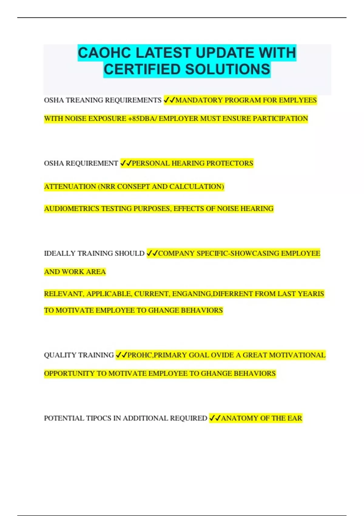 CAOHC LATEST UPDATE WITH CERTIFIED SOLUTIONS