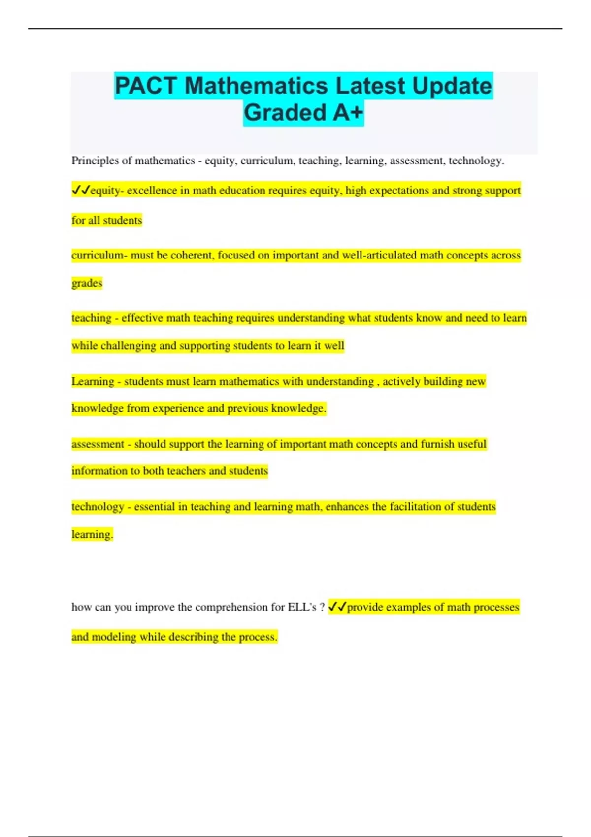 PACT Mathematics Latest Update Graded A+