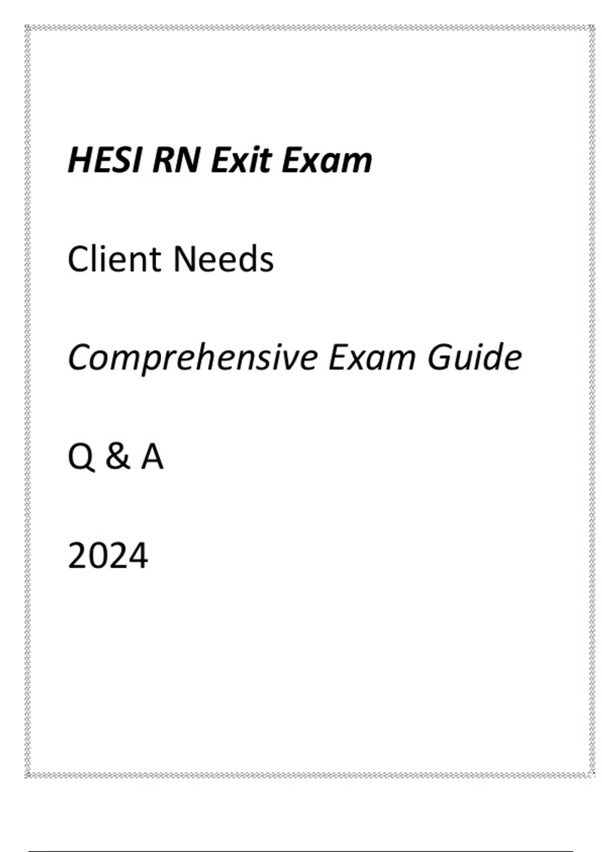 HESI RN Exit Exam (NCLEX Prep) Client Needs Comprehensive Exam Guide 65+ Qns & Ans 2024HESI RN Exit Exam (NCLEX Prep) Client Needs Comprehensive Exam Guide 65+ Qns & Ans 2024HESI RN Exit Exam (NCLEX Prep) Client Needs Comprehensive Exam Guide 65+ Qns & Ans 2024