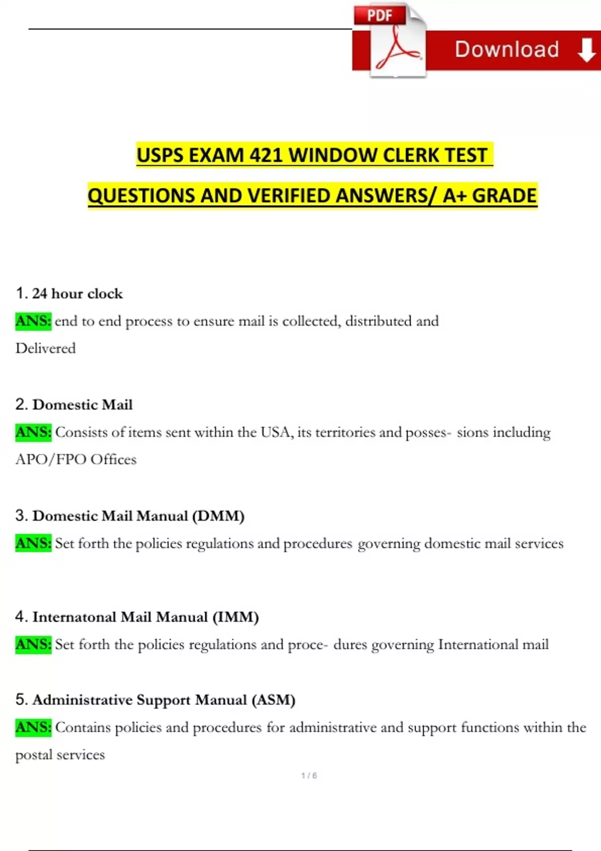 USPS Exam 421 Window Clerk Test Expected Questions and Answers (2024 / 2025) (Verified Answers)