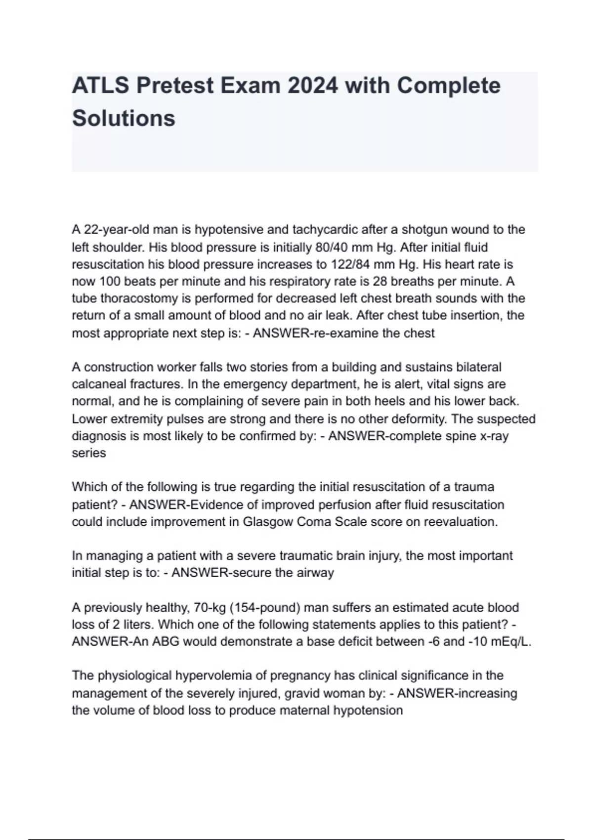 ATLS Pretest Exam 2024 with Complete Solutions.