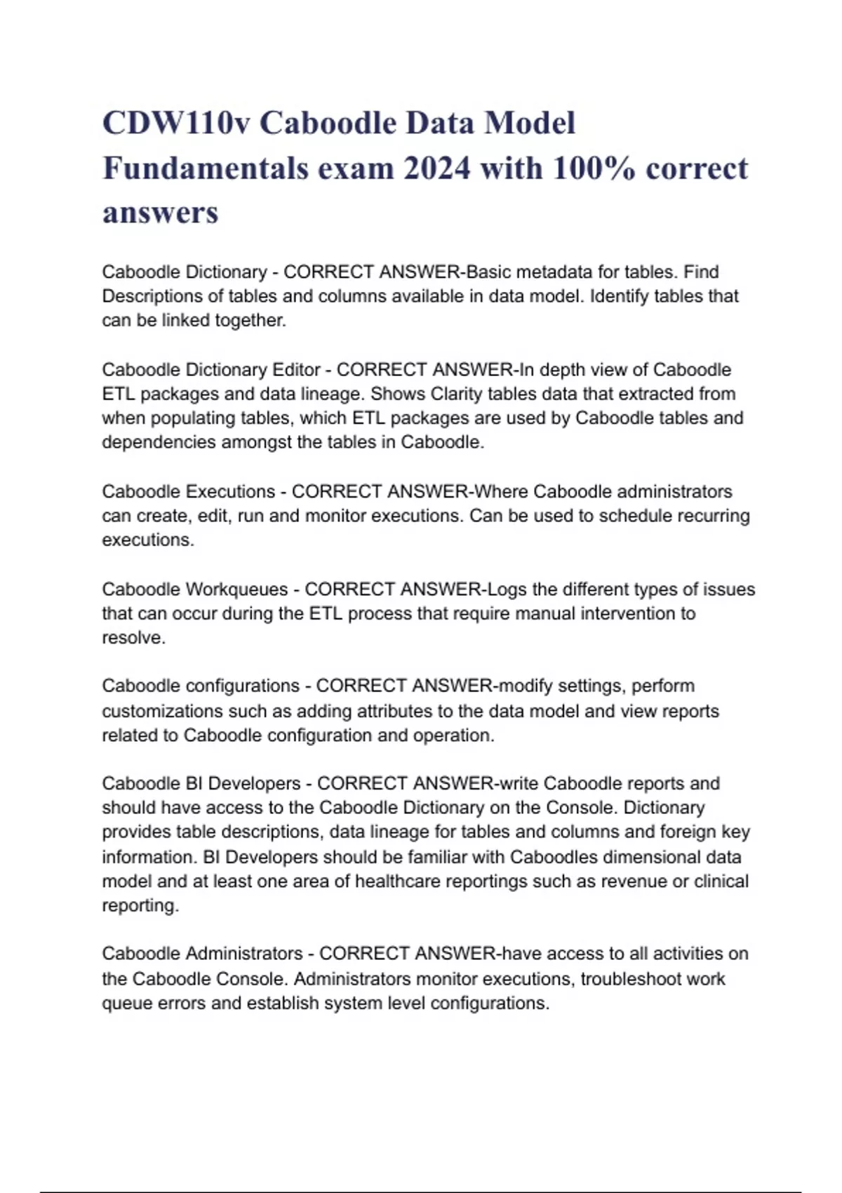 CDW110v Caboodle Data Model Fundamentals exam 2024 with 100% correct answers
