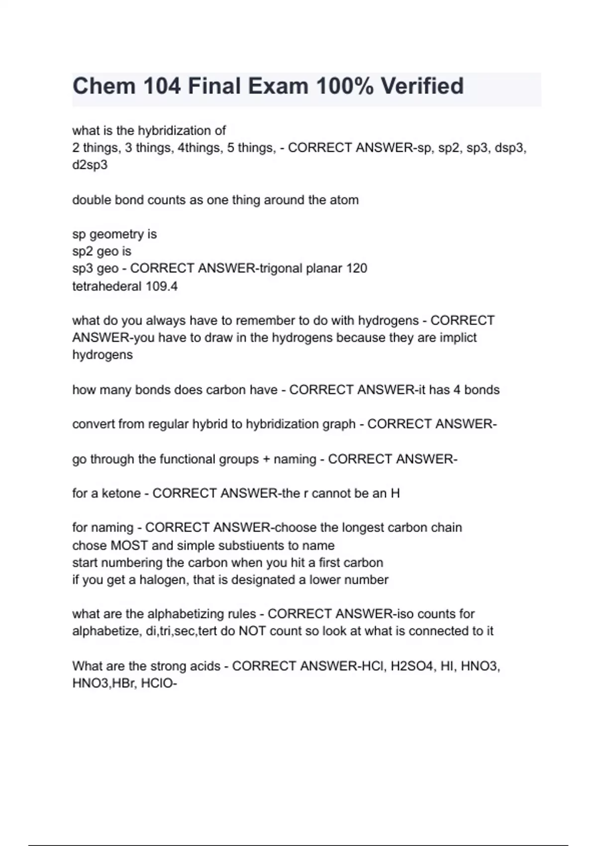 Chem 104 Final Exam 100% Verified.