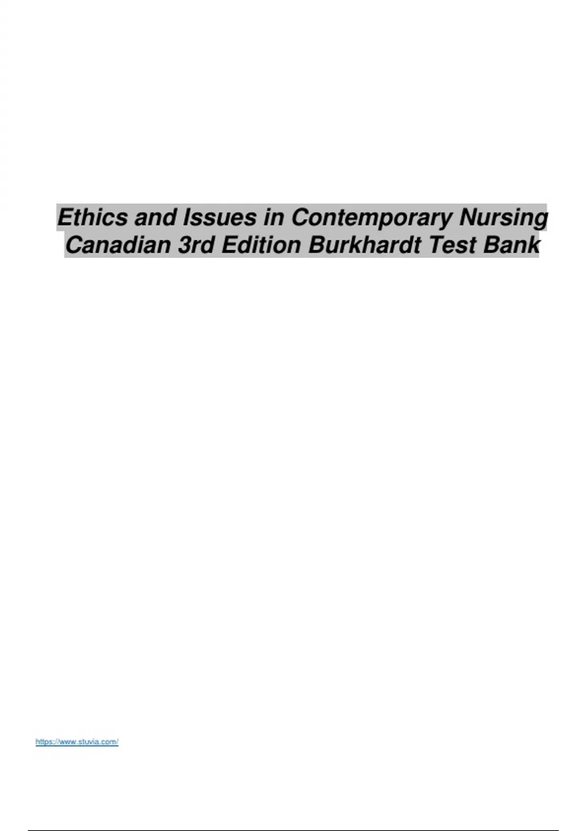 Ethics and Issues in Contemporary Nursing Canadian 3rd Edition Burkhardt Test Bank.
