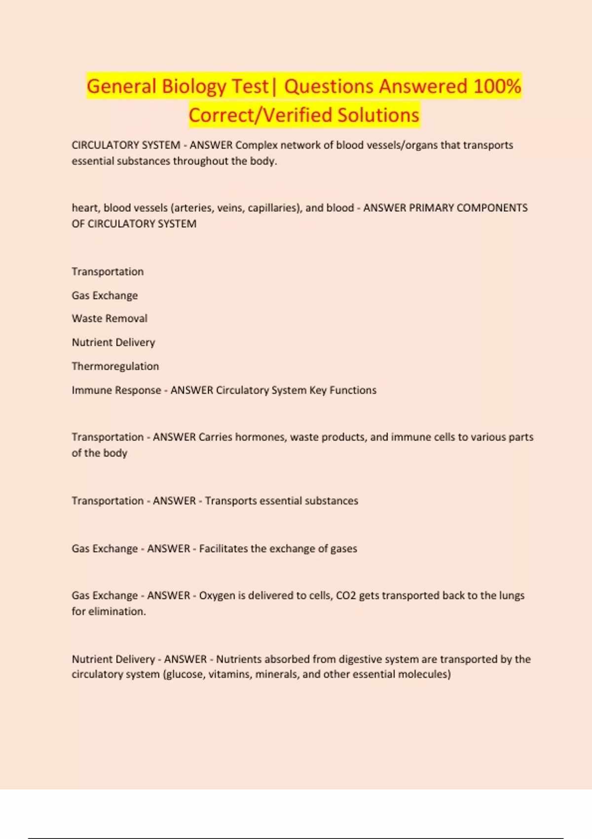 General Biology Test| Questions Answered 100% Correct/Verified Solution