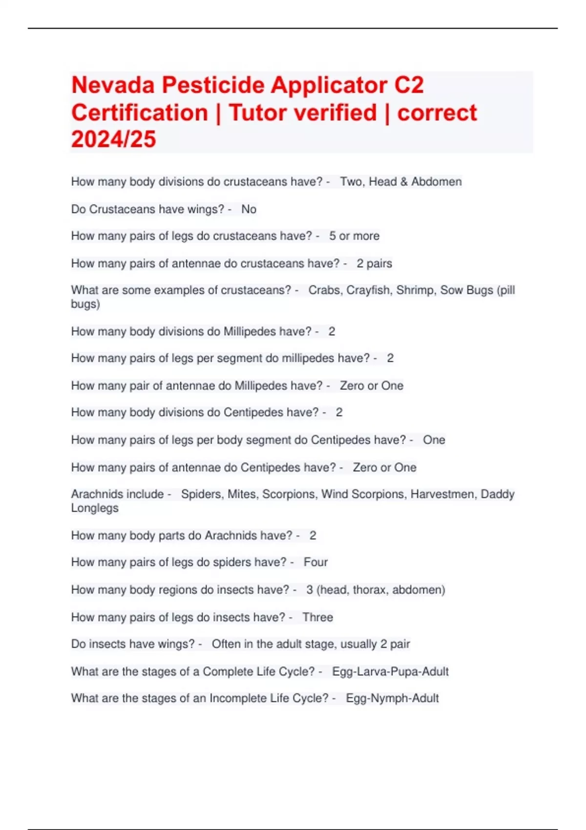 Nevada Pesticide Applicator C2 Certification | Tutor verified | correct 2024/25