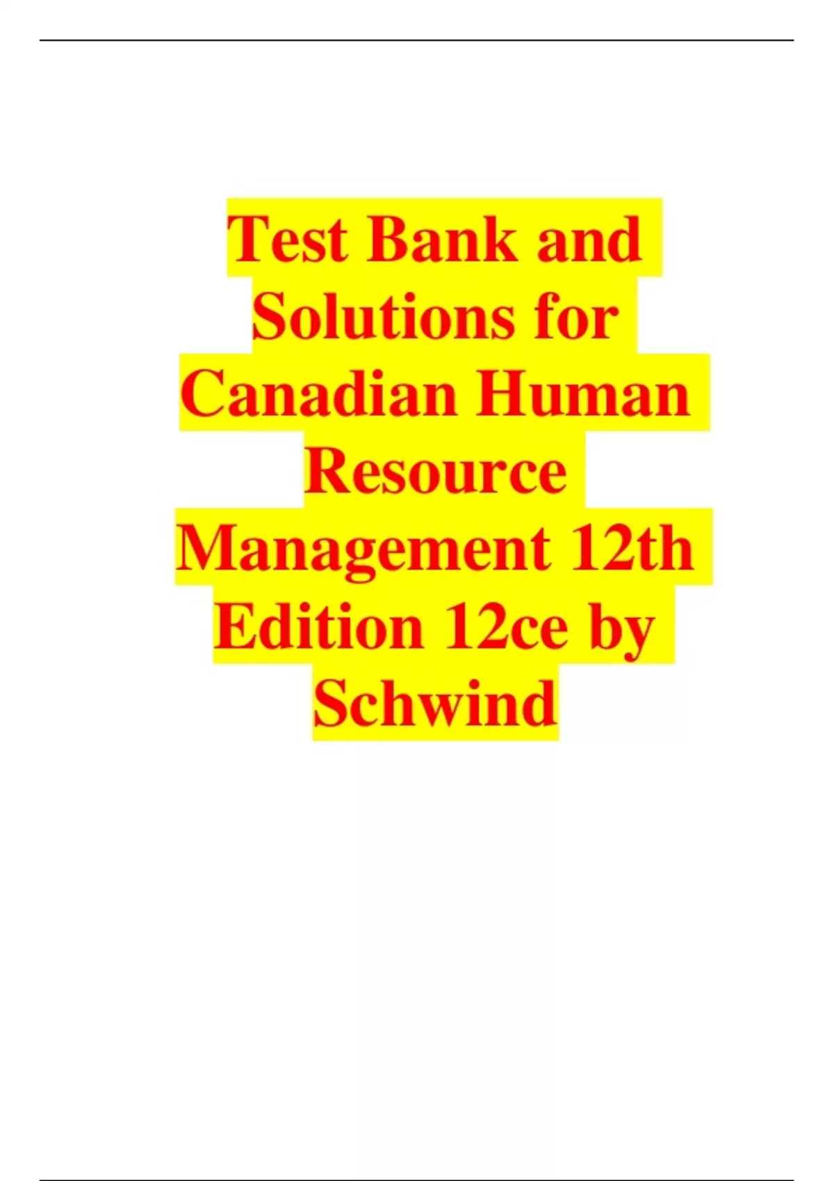 Test Bank and Solutions for Canadian Human Resource Management 12th Edition 12th Edition by Schwind