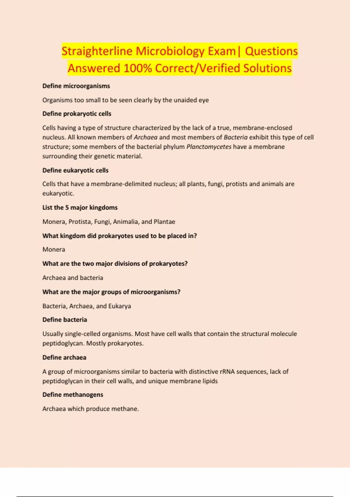 Straighterline Microbiology Exam| Questions Answered 100% Correct/Verified Solutions