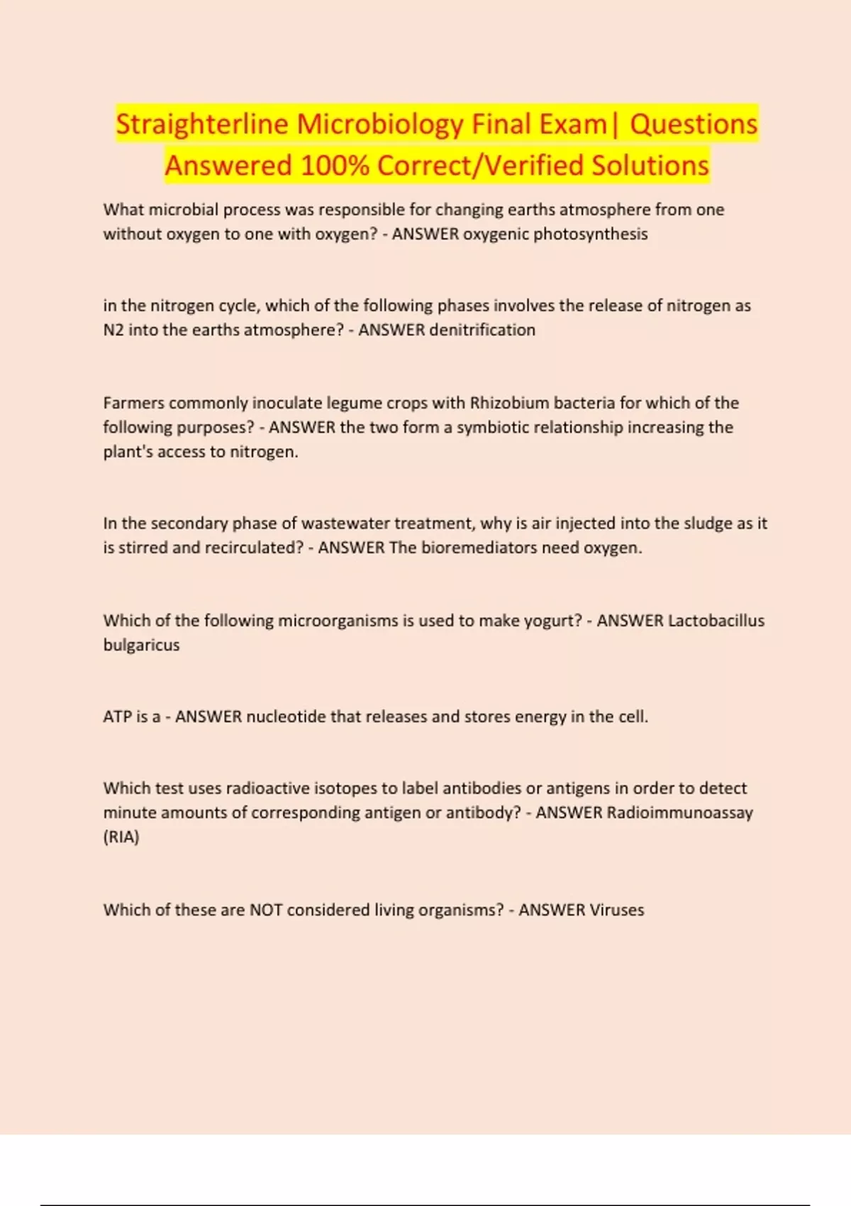Straighterline Microbiology Final Exam| Questions Answered 100% Correct/Verified Solutions