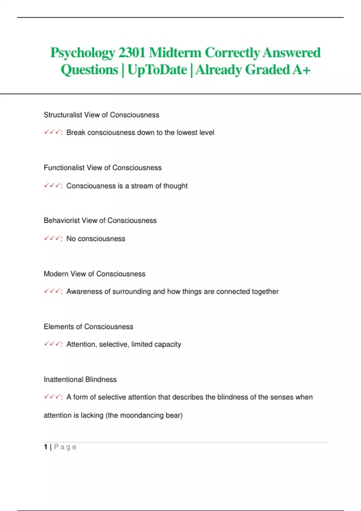 Psychology 2301 Midterm Correctly Answered Questions| UpToDate | Already Graded A+