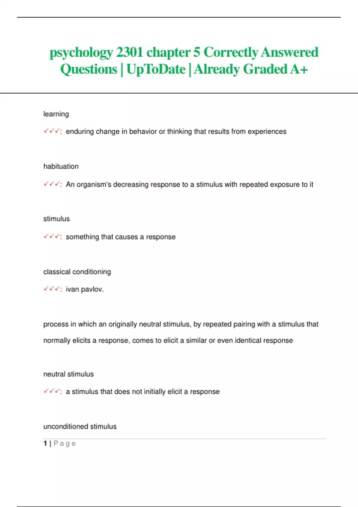 psychology 2301 chapter 5 Correctly Answered Questions| UpToDate | Already Graded A+