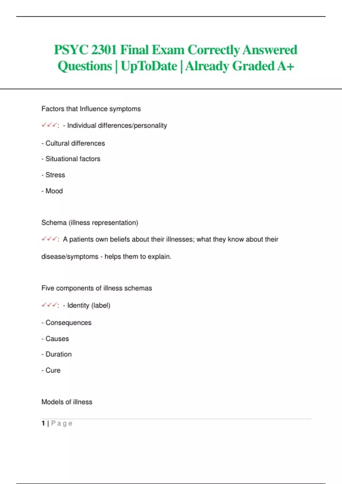 PSYC 2301 Final Exam Correctly Answered Questions| UpToDate | Already Graded A+