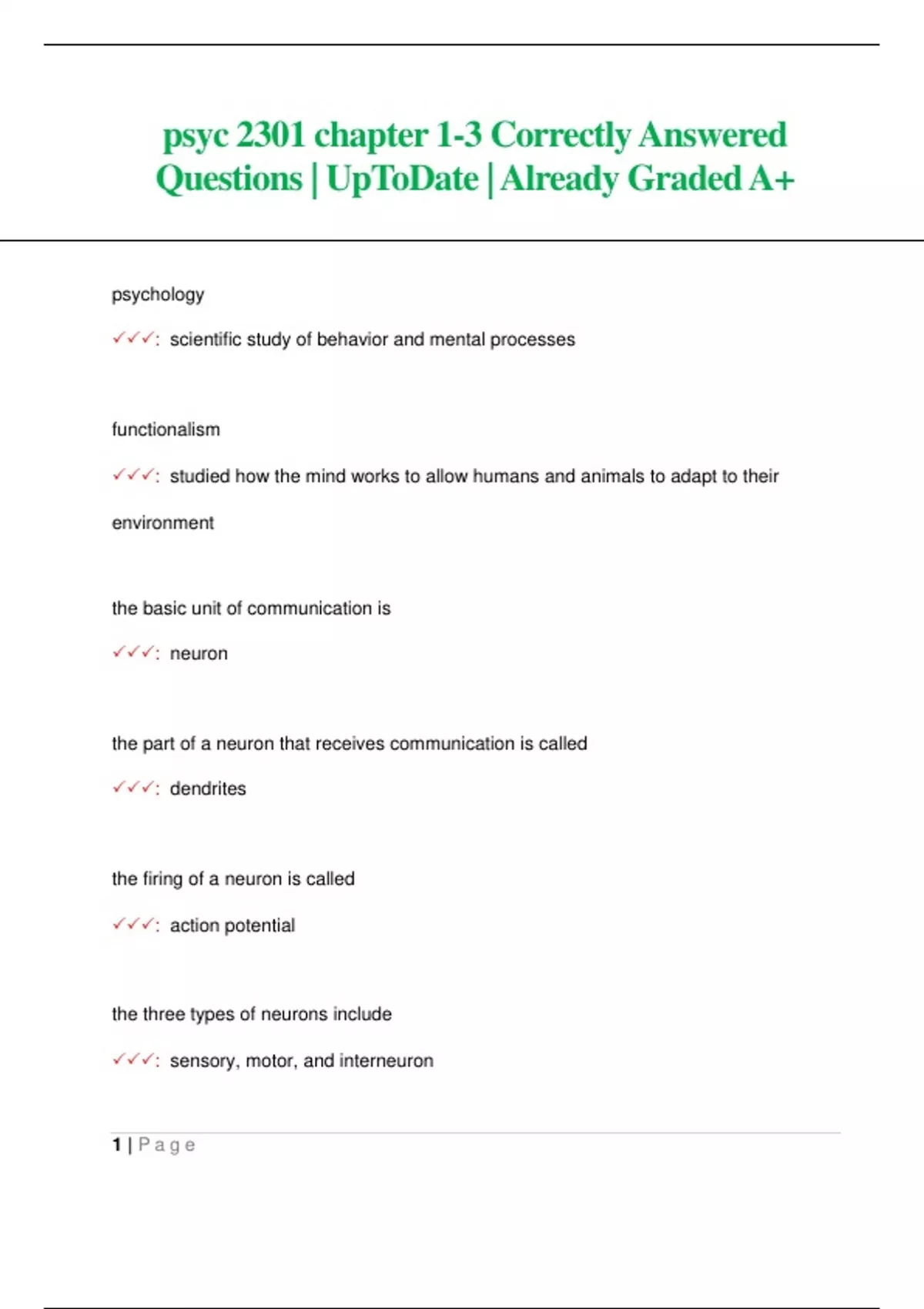 psyc 2301 chapter 1-3 Correctly Answered Questions| UpToDate | Already Graded A+