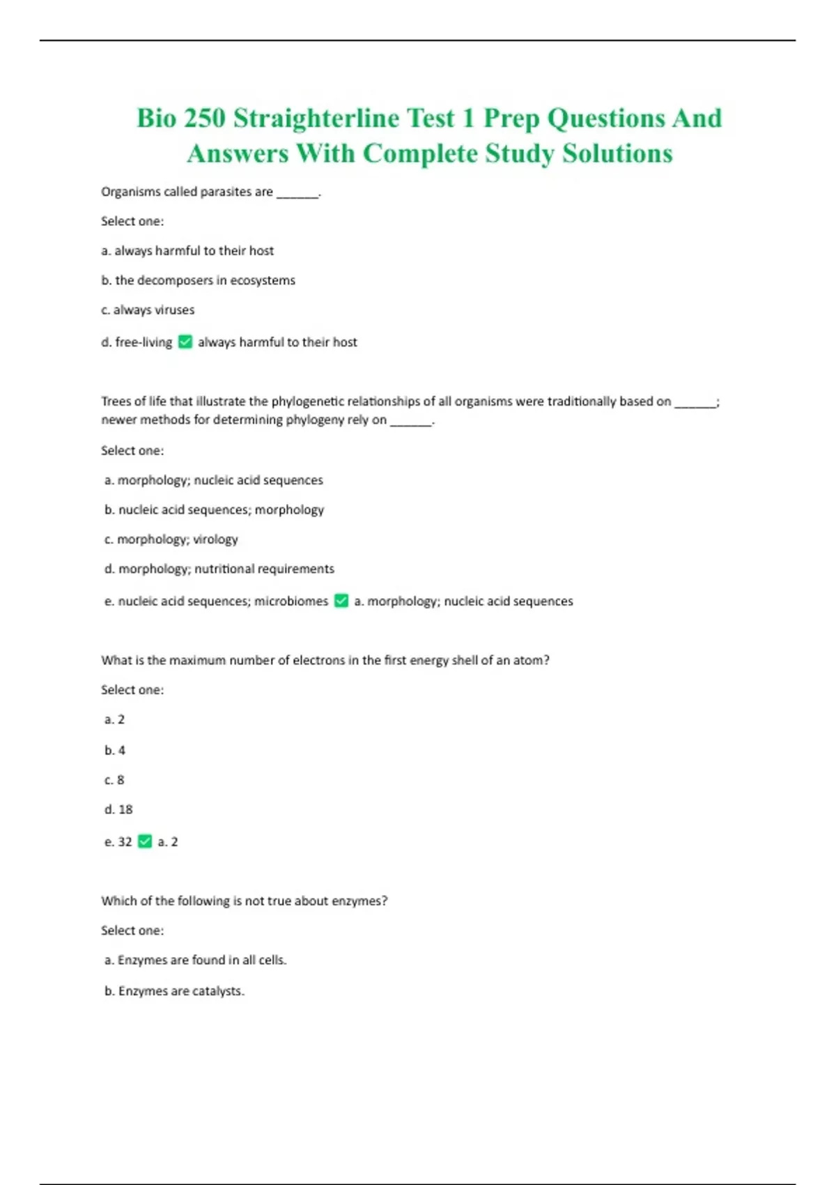 Bio 250 Straighterline Test 1 Prep Questions And Answers With Complete Study Solutions Bio 250 Straighterline Test 1 Prep Questions And Answers With Complete Study Solutions