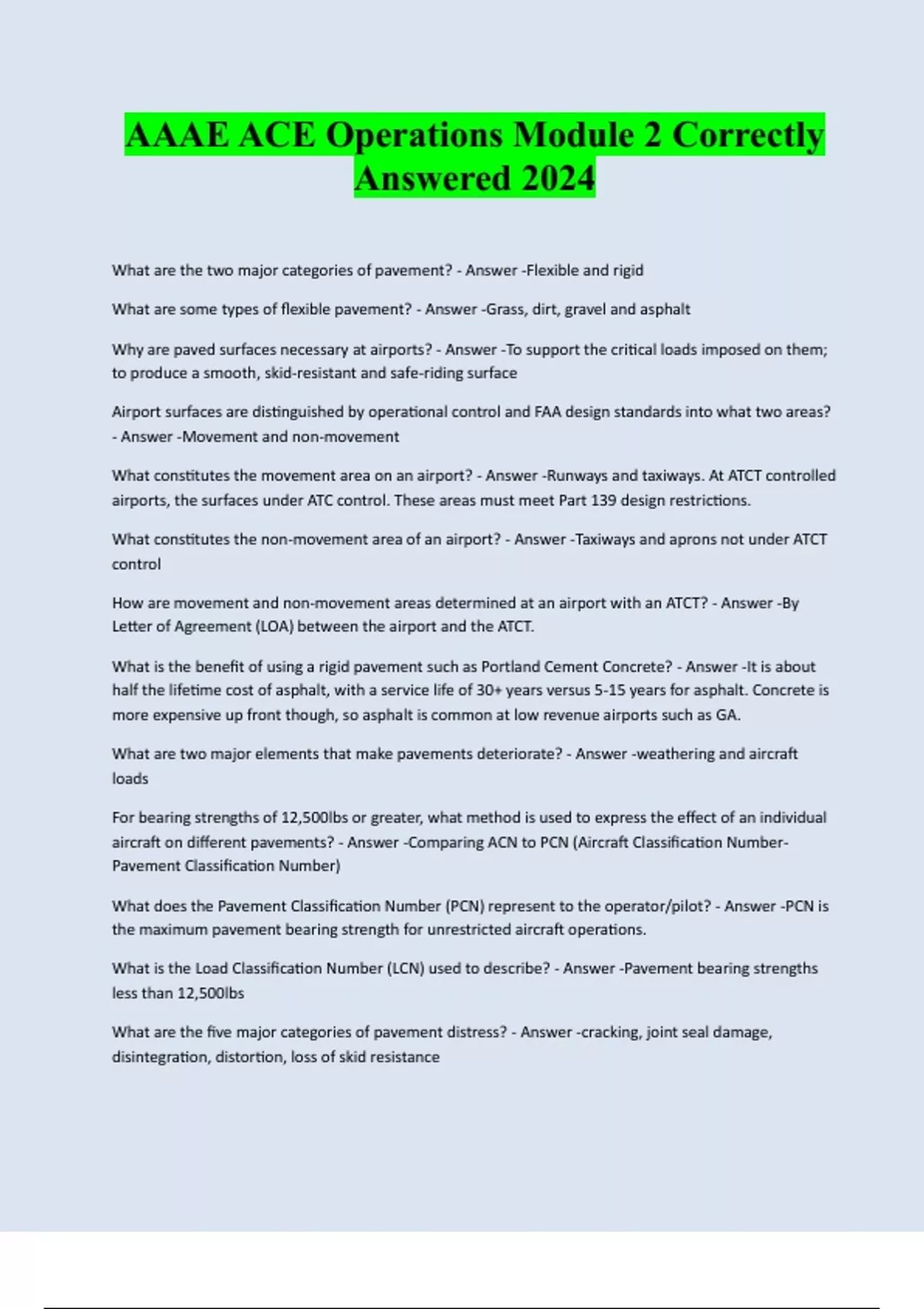 AAAE ACE Operations Module 2 Correctly Answered 2024
