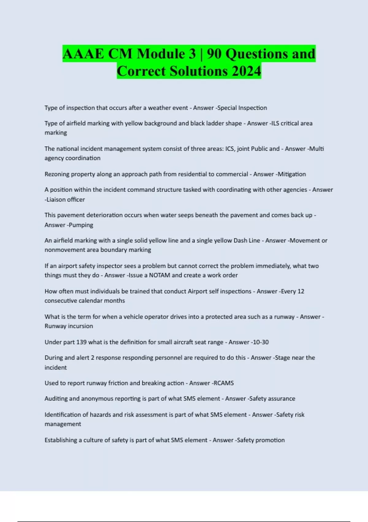 AAAE CM Module 3 | 90 Questions and Correct Solutions 2024