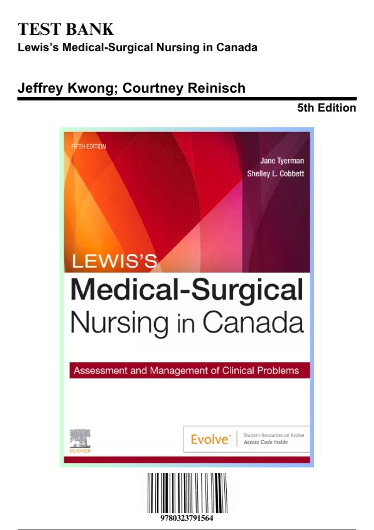 Test Bank for Lewis’s Medical-Surgical Nursing in Canada, 5th Edition by Tyerman, 9780323791564, Covering Chapters 1-72 | Includes Rationales