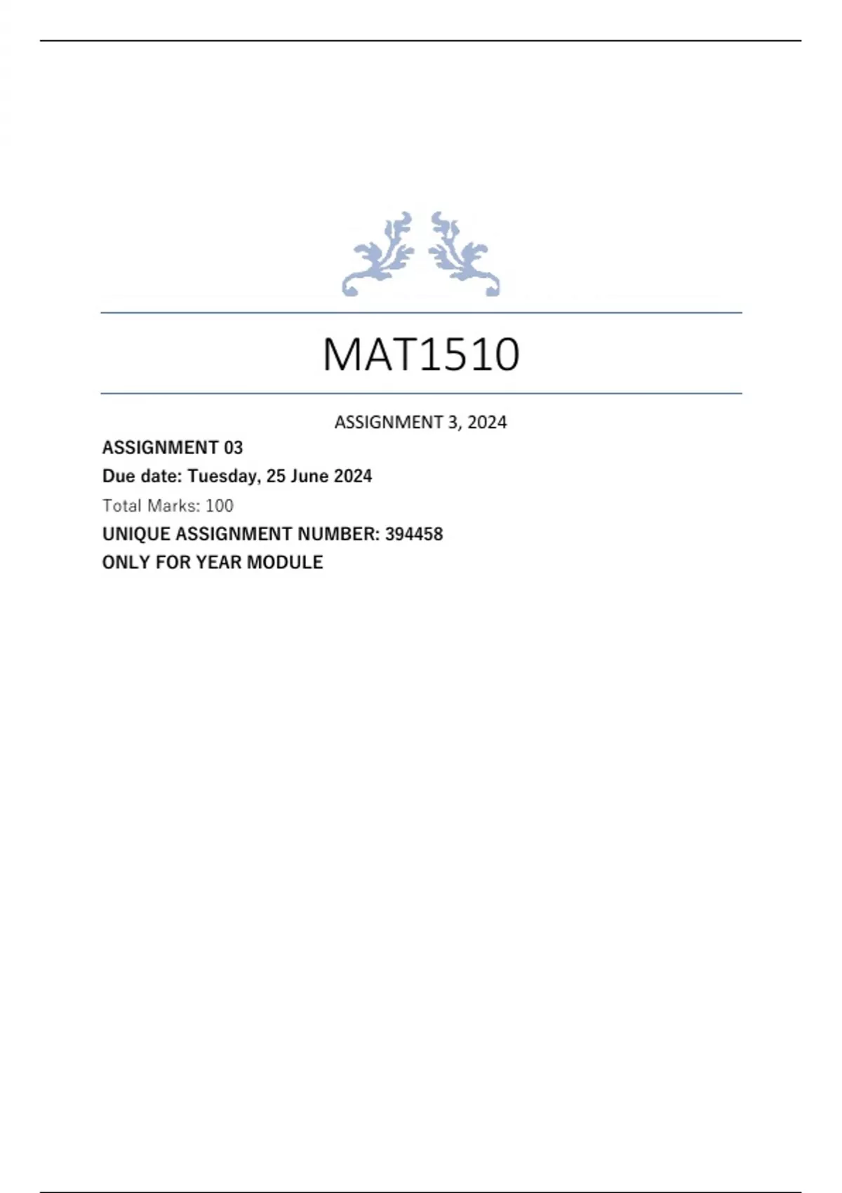 UNIQUE ASSIGNMENT NUMBER: 394458