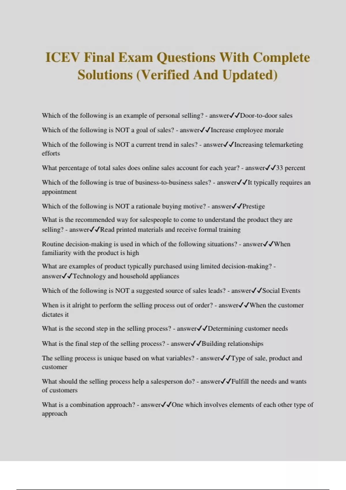 ICEV Final Exam Questions With Complete Solutions (Verified And Updated)