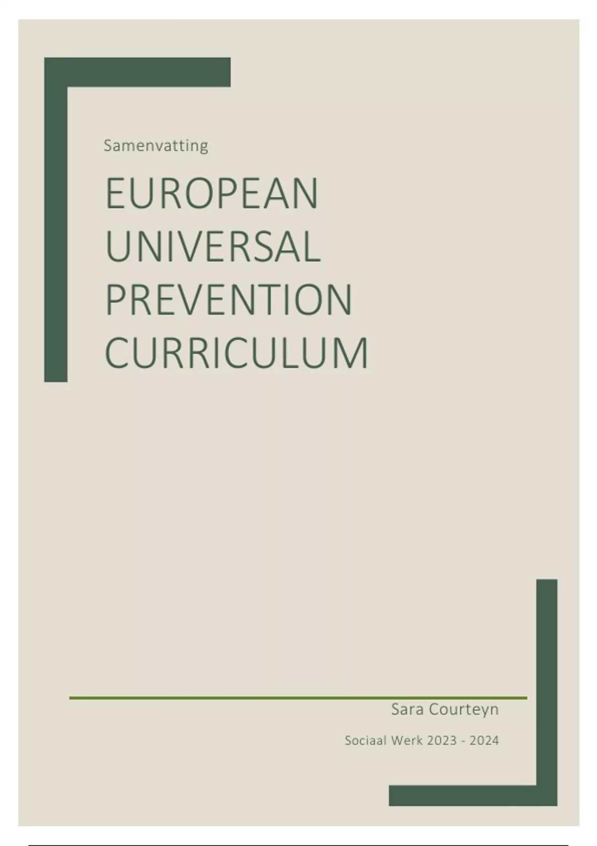European Universal Prevention Curriculum Resume Summary of all Powerpoints with lesson notes