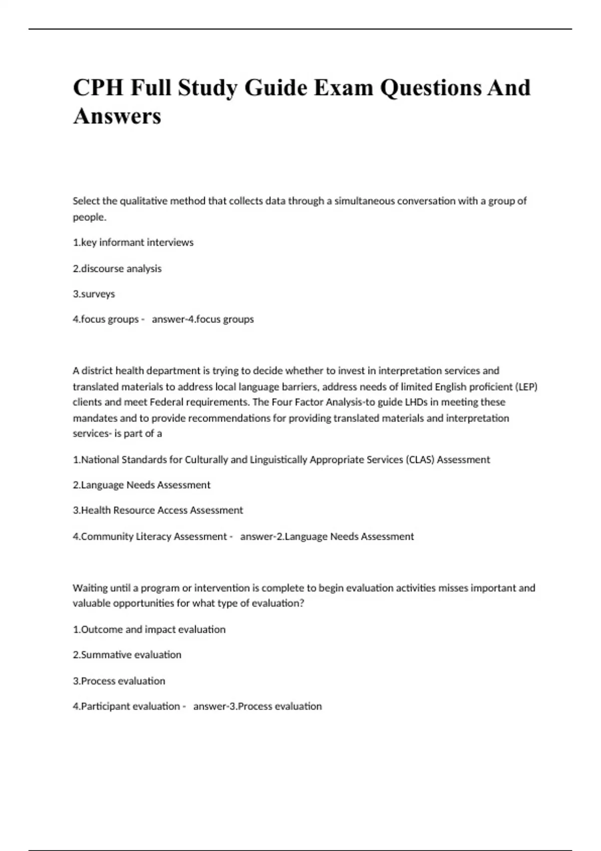 CPH (CERTIFIED PUBLIC HEALTH) EXAM PACKAGE DEAL ALREADY GRADED TO PASS!!