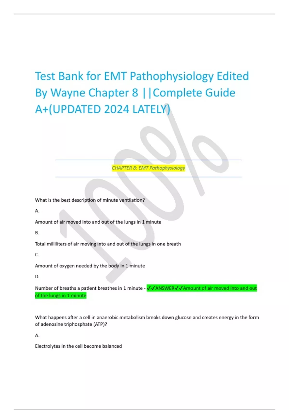 Test Bank for EMT Pathophysiology Edited By Wayne Chapter 8.