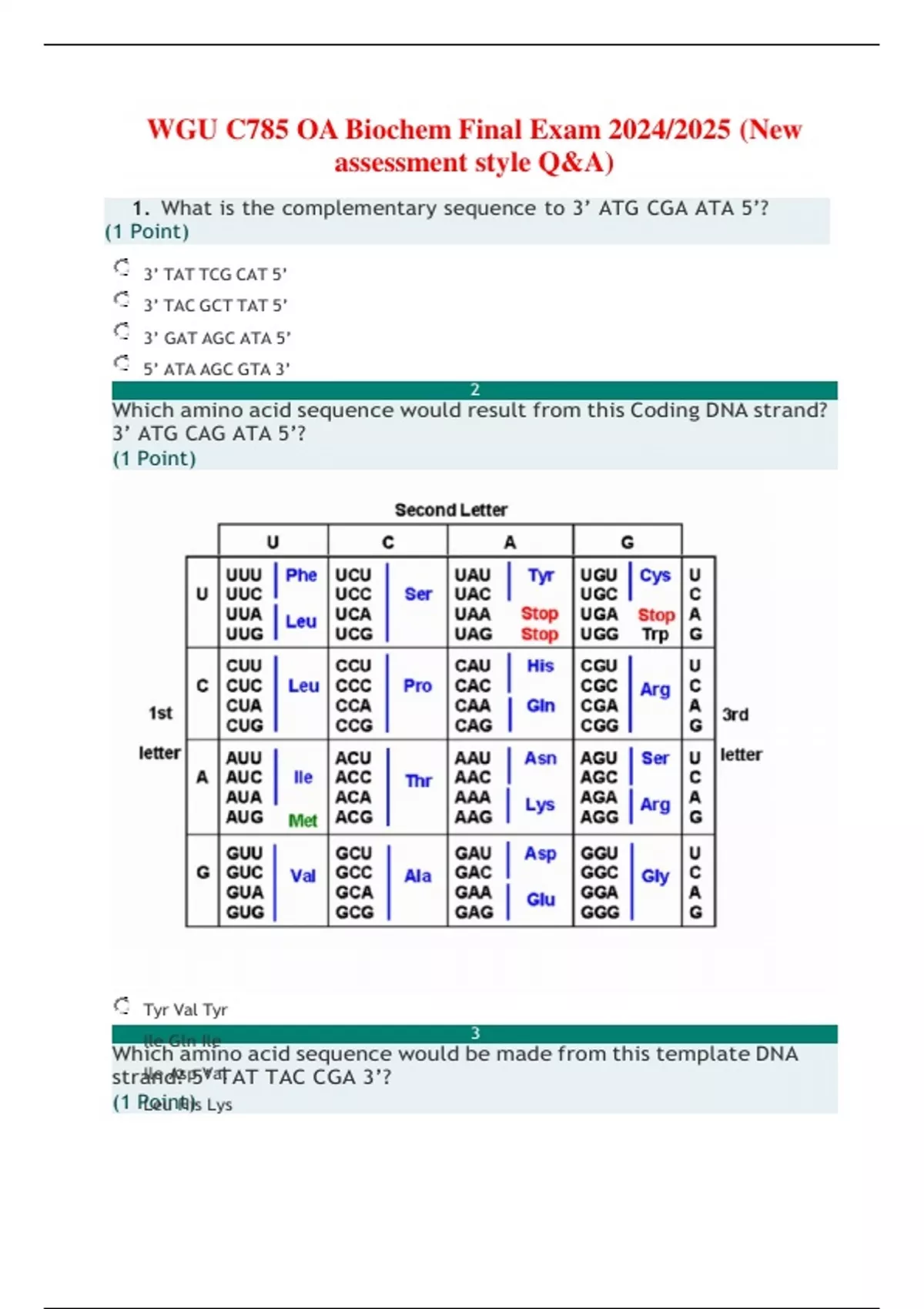 WGU C785 OA Biochem Final Exam 2024/2025 (New assessment style Q&A)