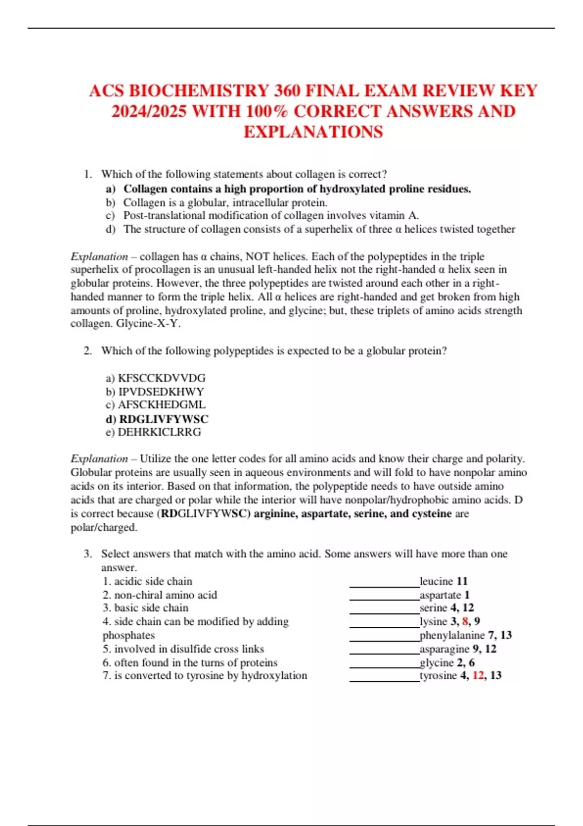 ACS BIOCHEMISTRY 360 FINAL EXAM REVIEW KEY 2024/2025 WITH 100% CORRECT ANSWERS AND EXPLANATIONS