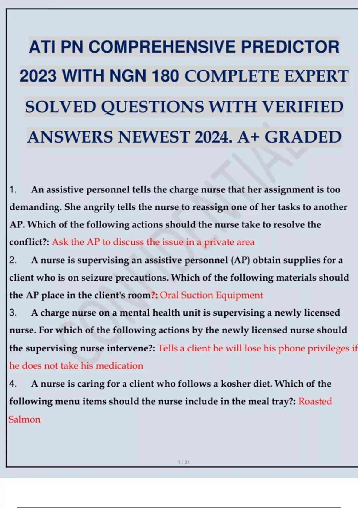 ATI PN COMPREHENSIVE PREDICTOR 2023 WITH NGN 180 COMPLETE EXPERT SOLVED QUESTIONS WITH VERIFIED ANSWERS NEWEST 2024. A+ GRADED.