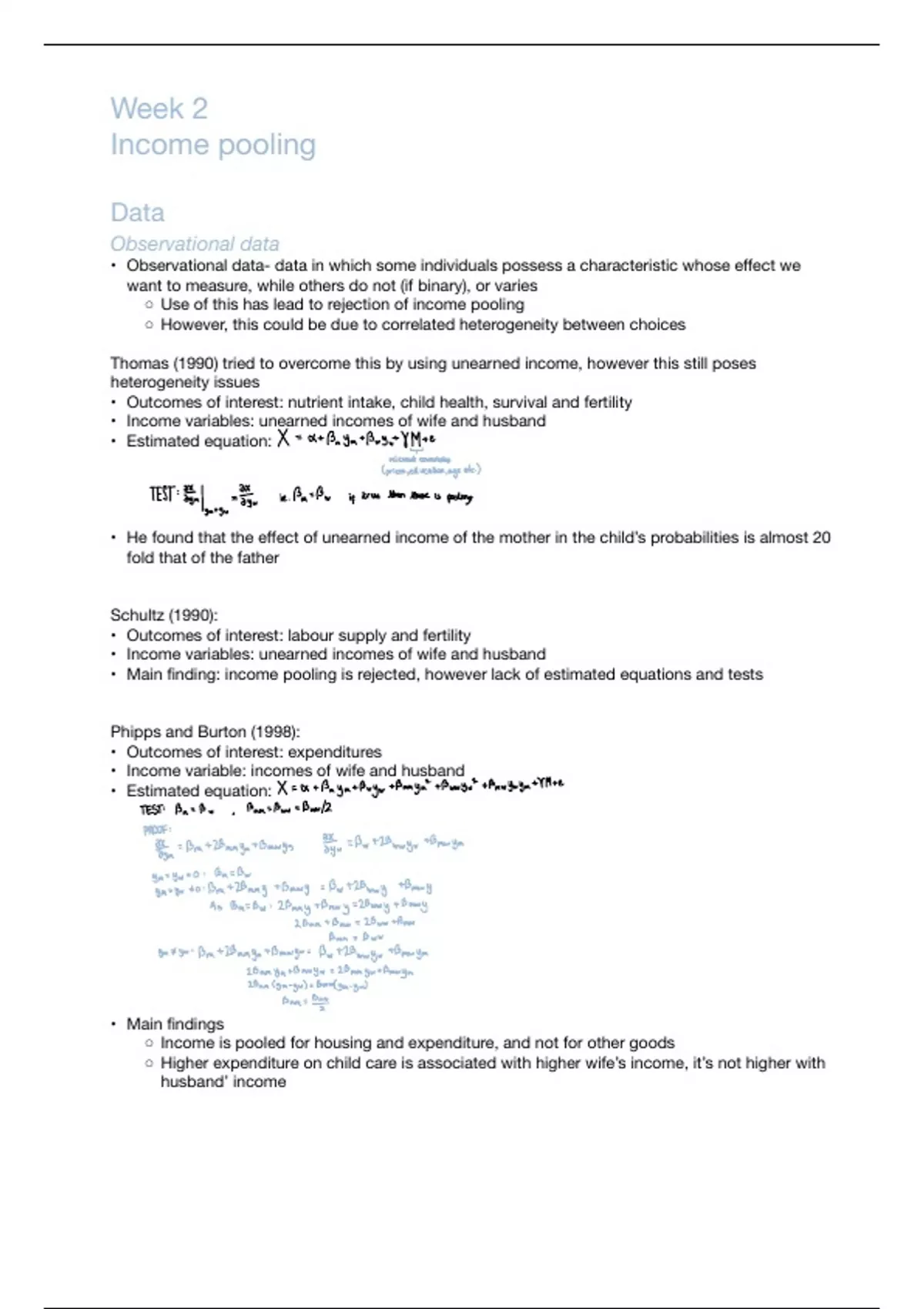 • Main nding: income pooling is rejected, however lack of estimated equations and tests