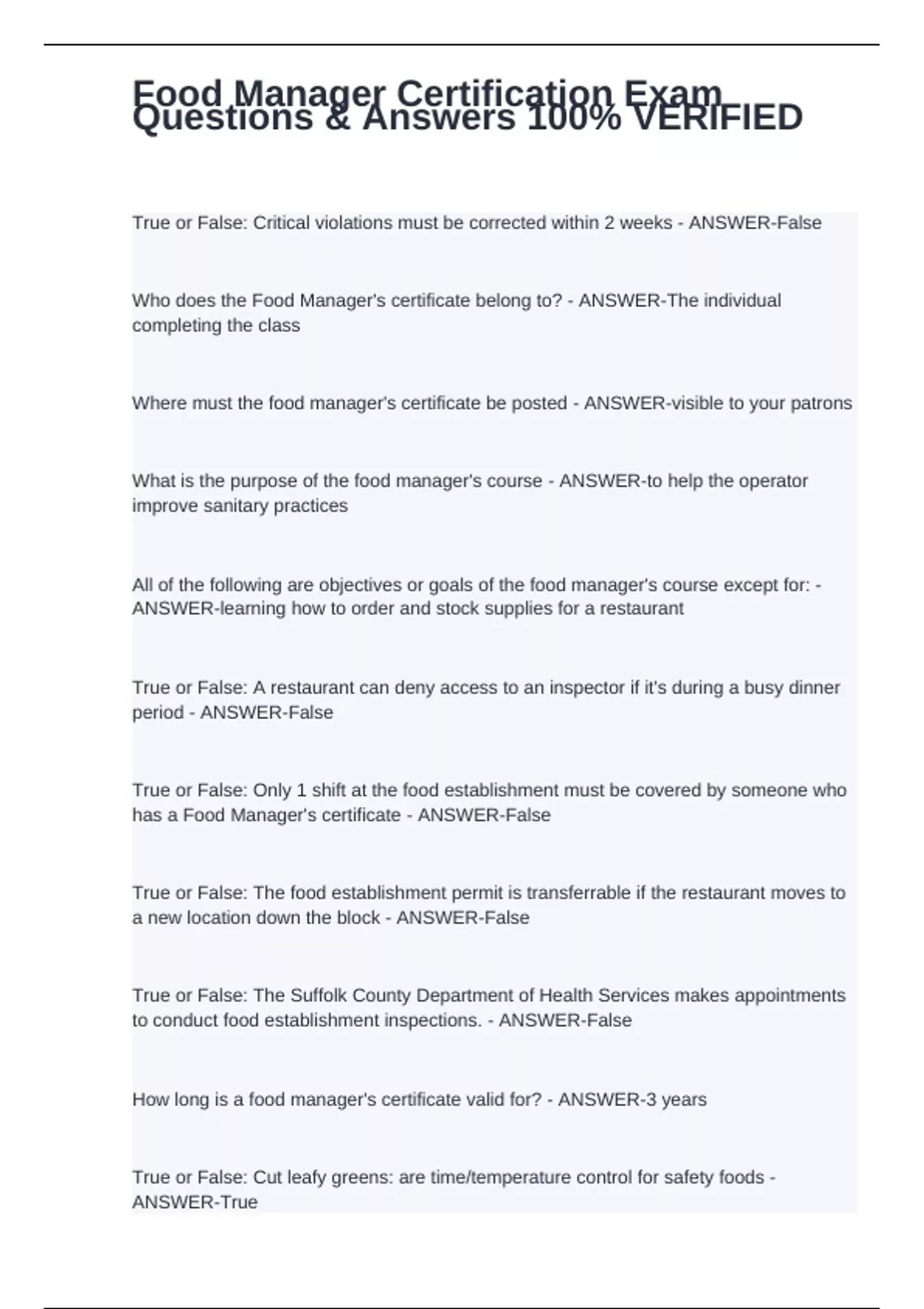 has a Food Manager's certificate - ANSWER-False
