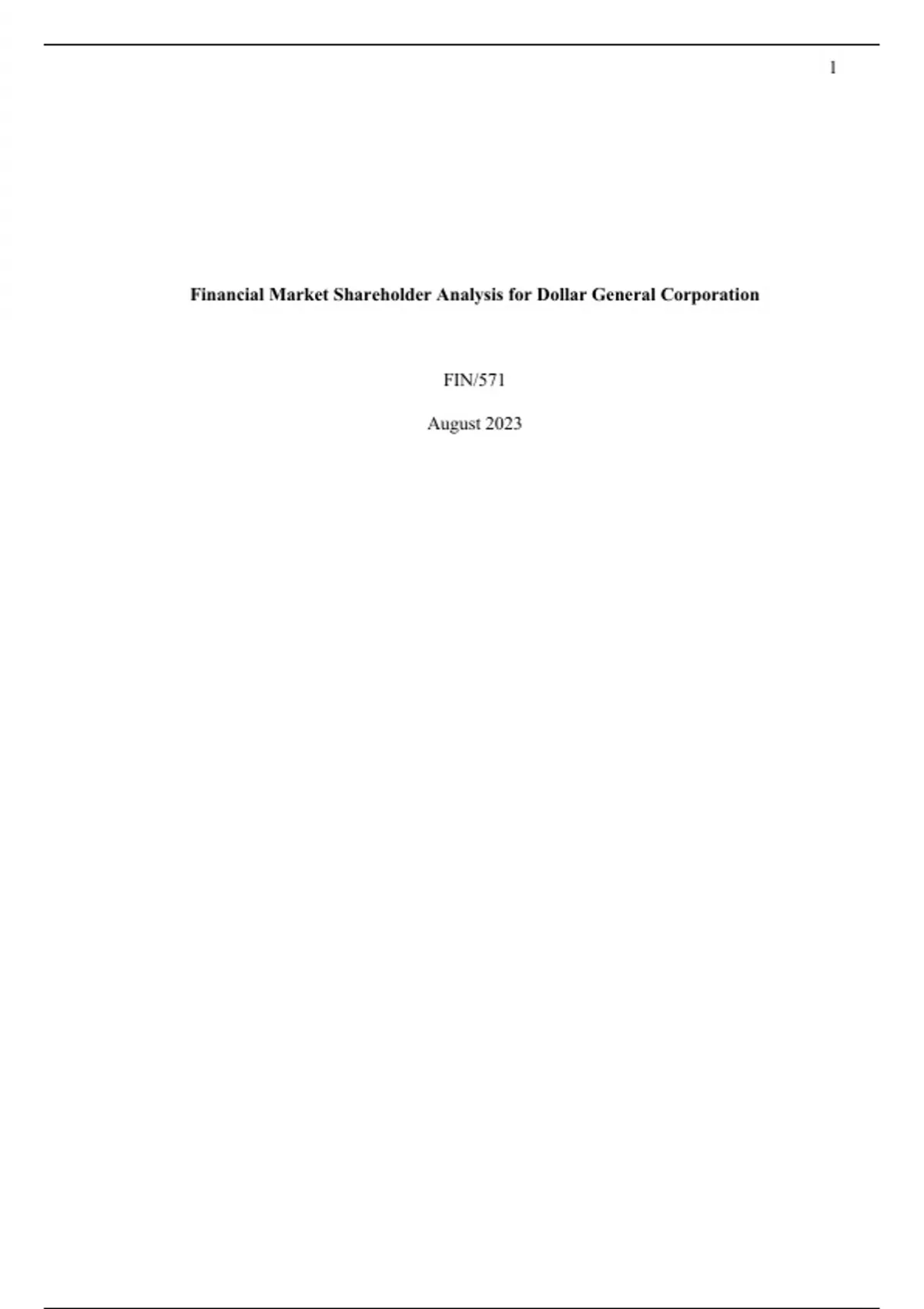 Financial Market Shareholder Analysis for Dollar General Corporation