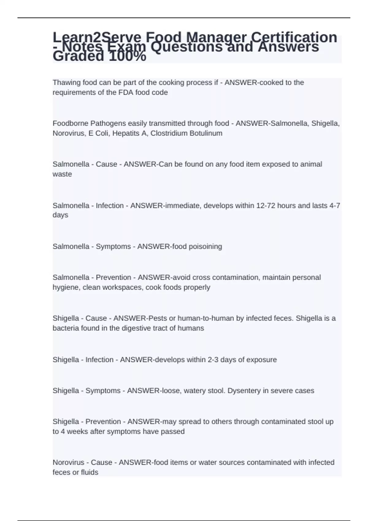 Foodborne Pathogens easily transmitted through food - ANSWER-Salmonella, Shigella,
