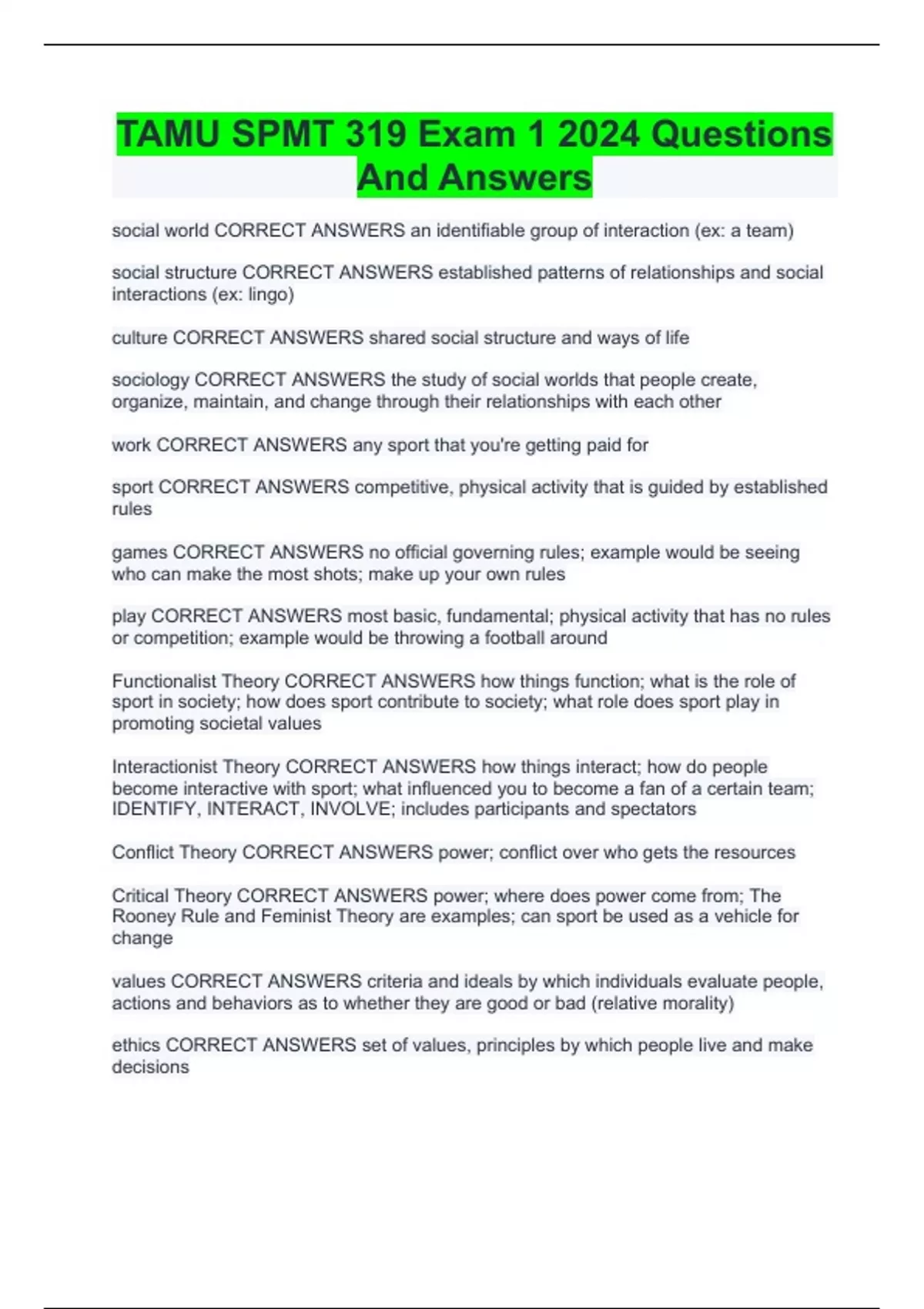 TAMU SPMT 319 Exam 1 2024 Questions And Answers