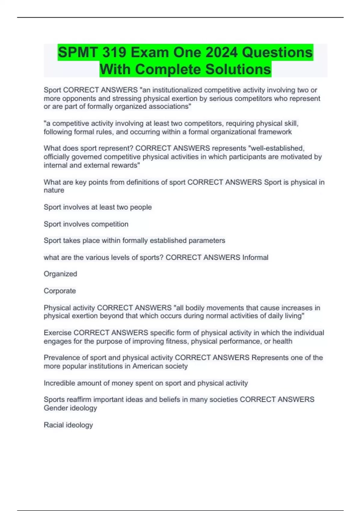 SPMT 319 Exam One 2024 Questions With Complete Solutions