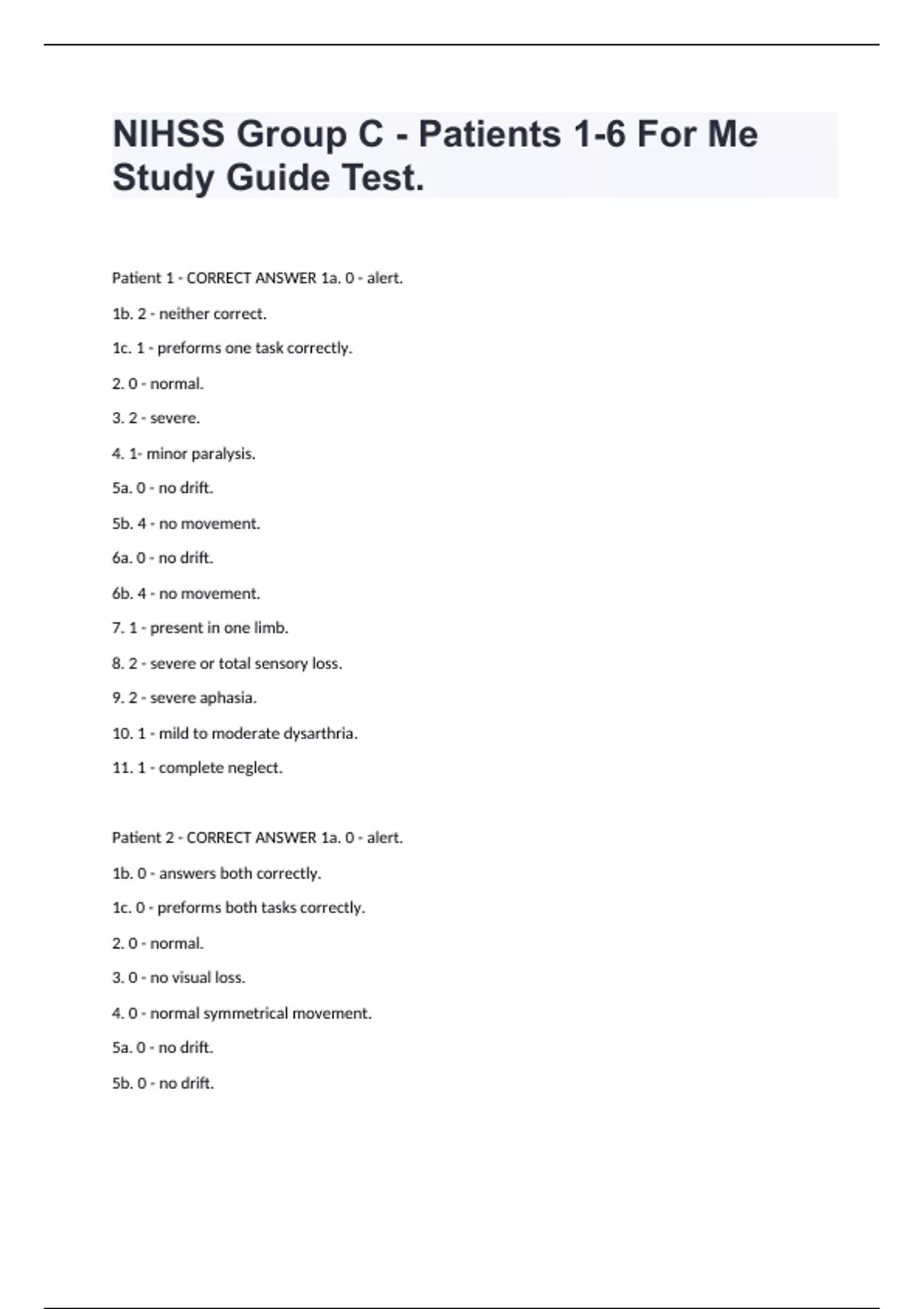 NIHSS Group C - Patients 1-6 For Me Study Guide Test.
