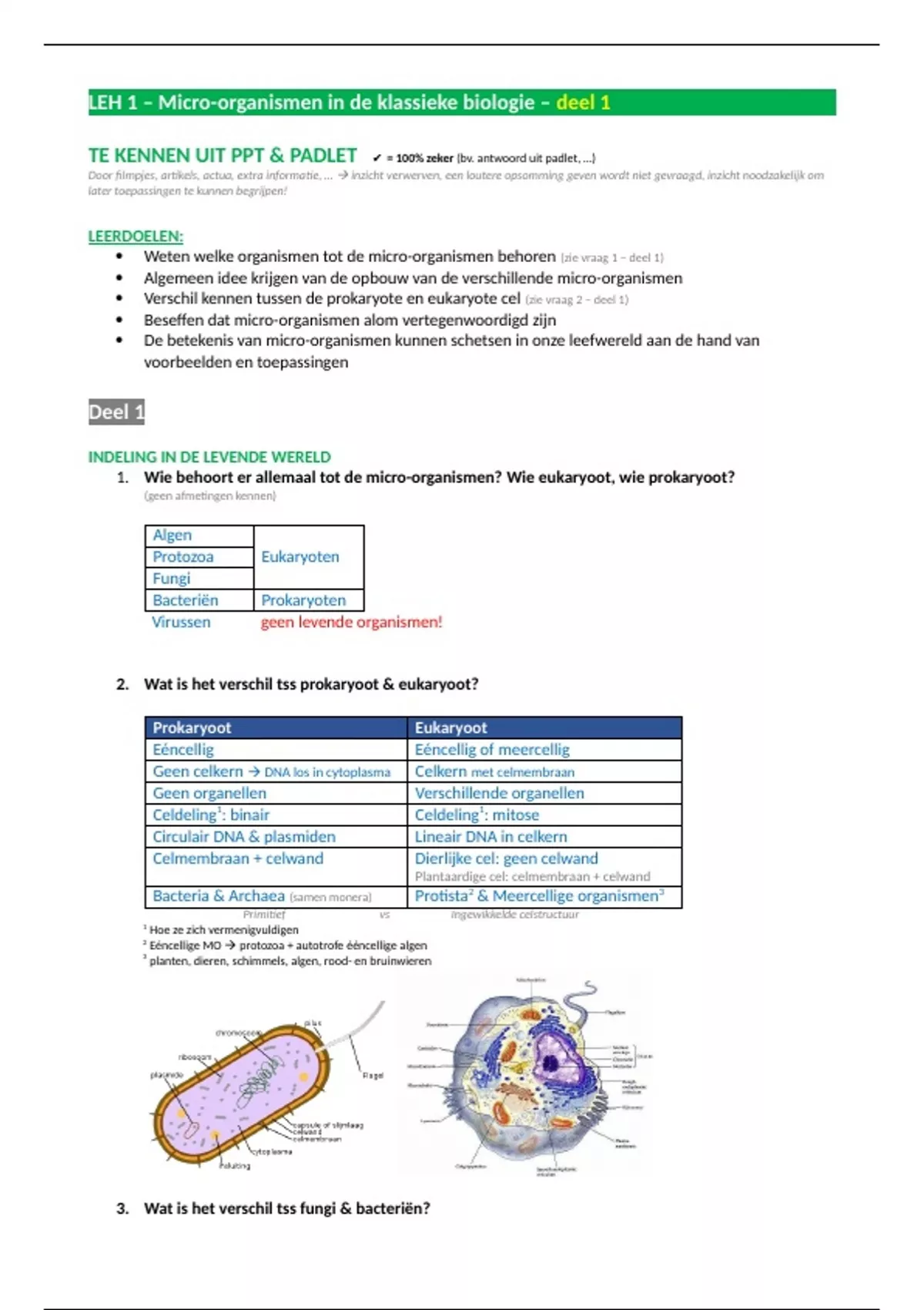1. Wie behoort er allemaal tot de micro-organismen? Wie eukaryoot, wie prokaryoot?