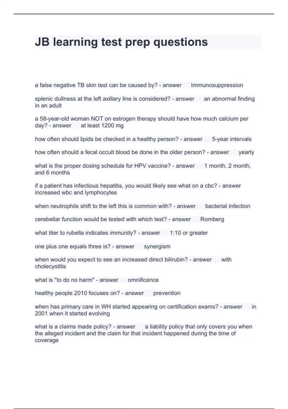 JB learning test prep questions and answers 100% correct