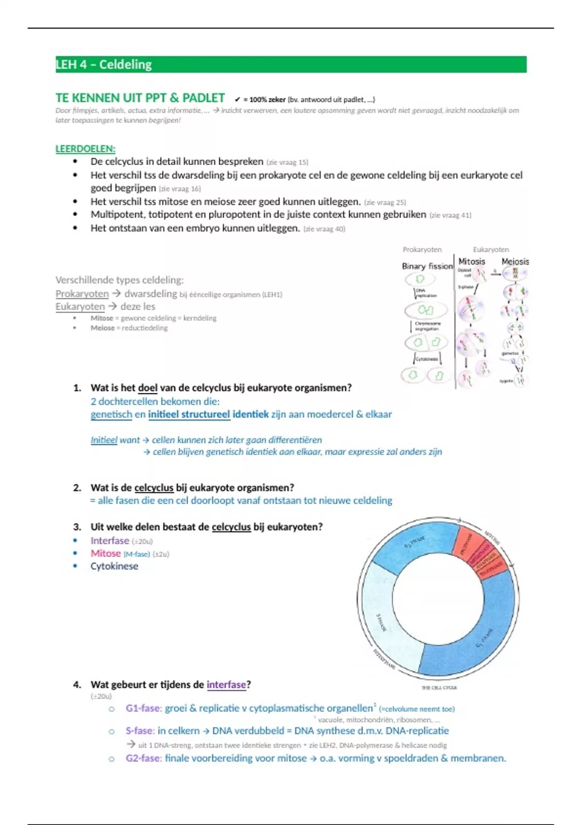 3. Uit welke delen bestaat de celcyclus bij eukaryoten?