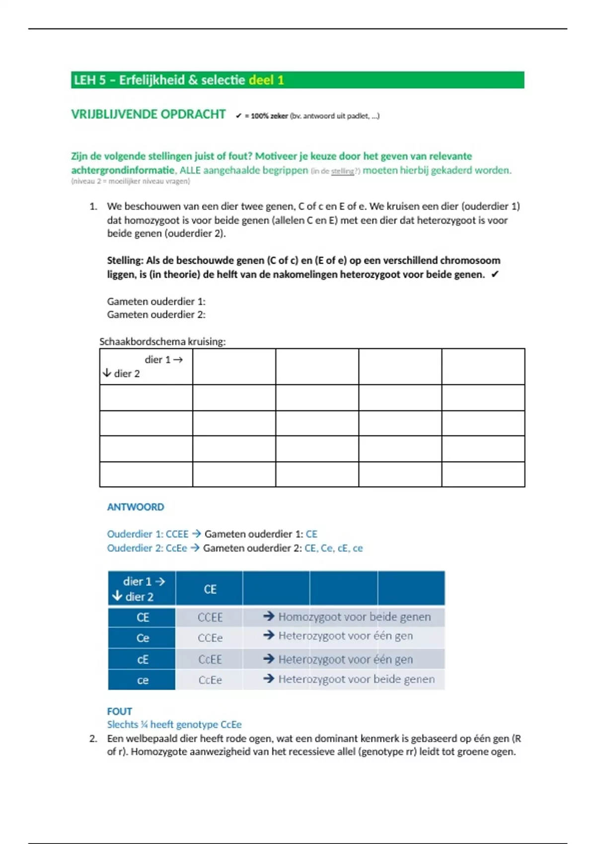 1. We beschouwen van een dier twee genen, C of c en E of e. We kruisen een dier (ouderdier 1)